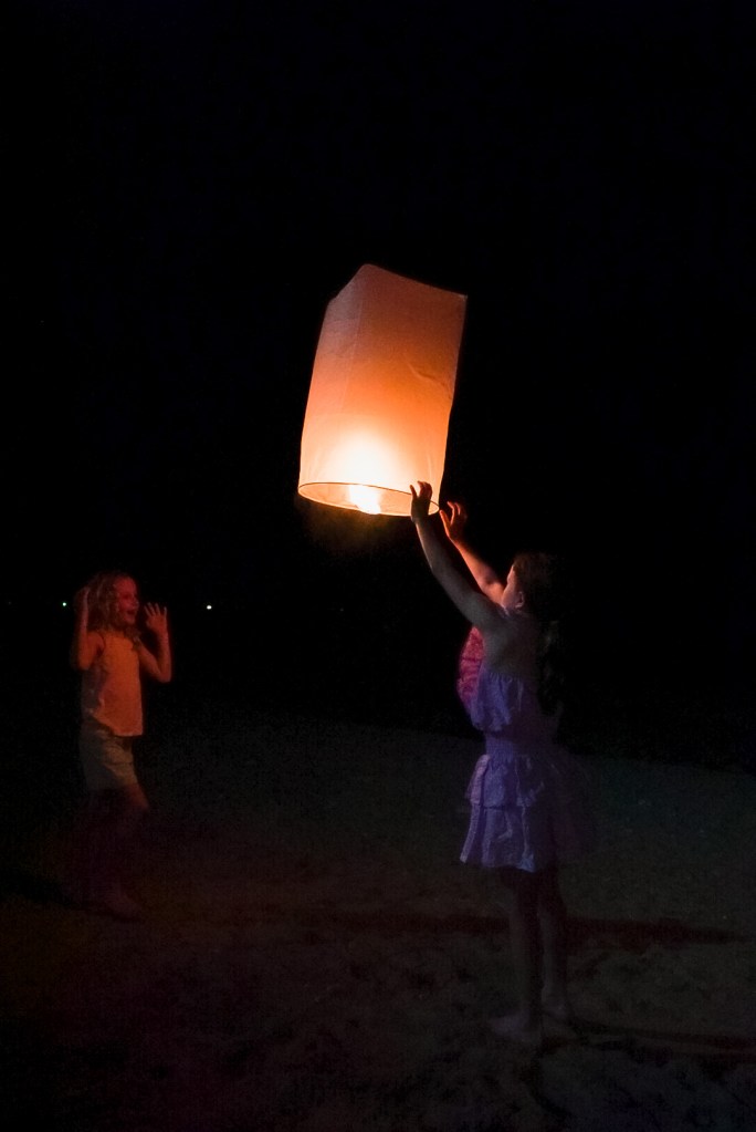 We met a wonderful English couple, Sam and Dave, who we ran into every night at cocktail hour. That’s the beauty of a place like this. The people you meet. The stories you hear. On our last night as we said goodbye we noticed people releasing lanterns down the beach. Sam gave the girls the confidence to go ask if they could do one and my goodness it was special.