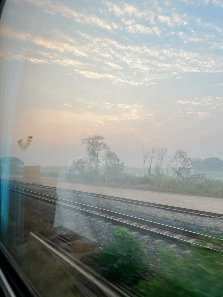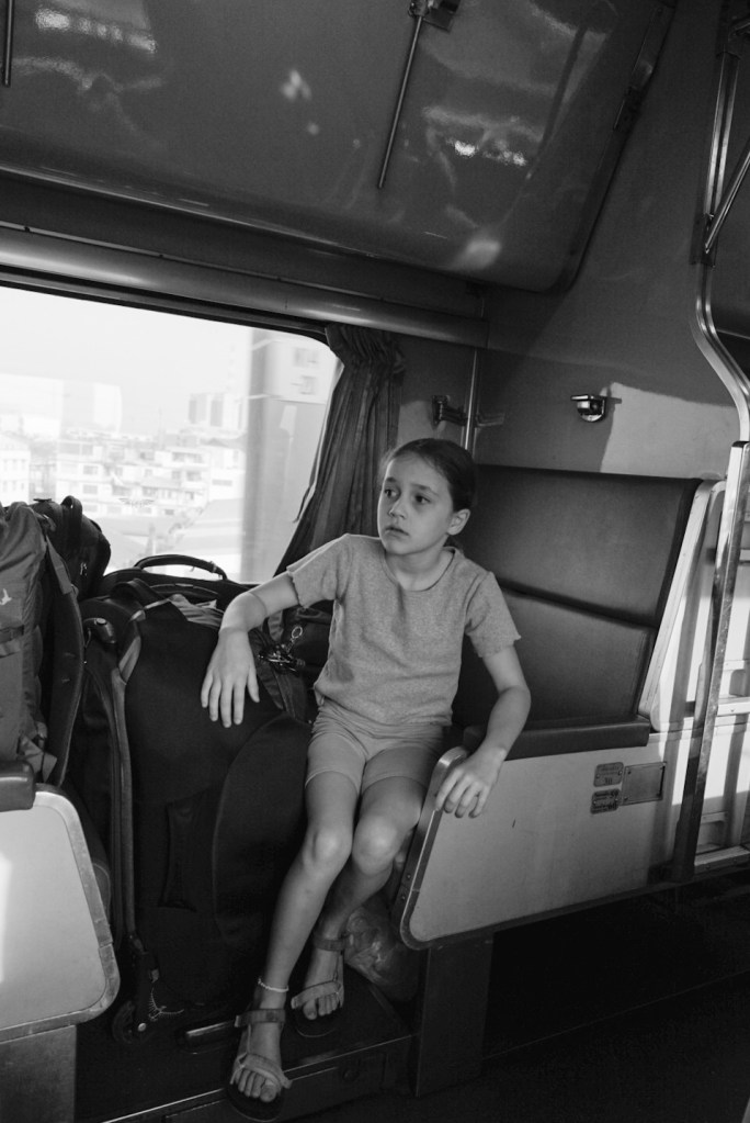 I booked tickets for the second class air conditioned carriage through 12Go. The carriage was made up of a long row of double bunk beds with curtains for privacy. The girls slept on the top bunks, Tom and I below. The bottom bunks are darker and bigger making them better for a ‘good’ night sleep. The clickety-clack of the train made ear plugs essential, at least for me, and we all used eye masks to block out the florescent lighting that stayed on overnight.