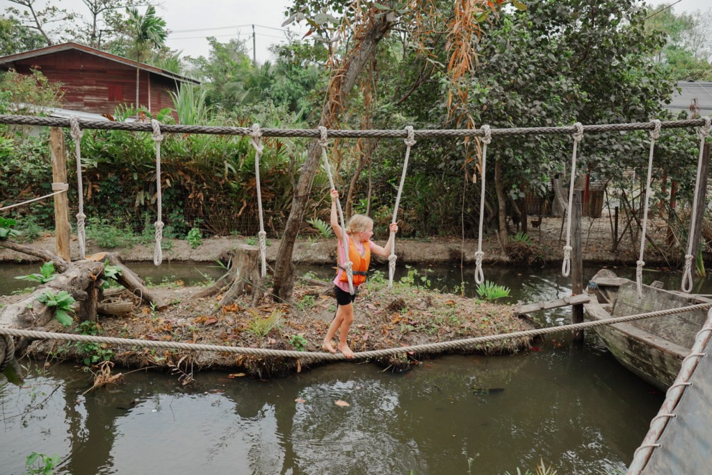 Access to the park costs 200 baht per child and is 100% worth it. The staff are incredibly kind and helpful. There are toilets, showers to wash the kids off, and a cafe serving food and drinks. To get there we took a small boat from Wat Khlong Toei Nok Pier for 40 baht return, then walked 10 minutes through quiet tree lined streets to get to the park. If you wanted to spend longer in the area you can hire bikes from the pier to explore further.