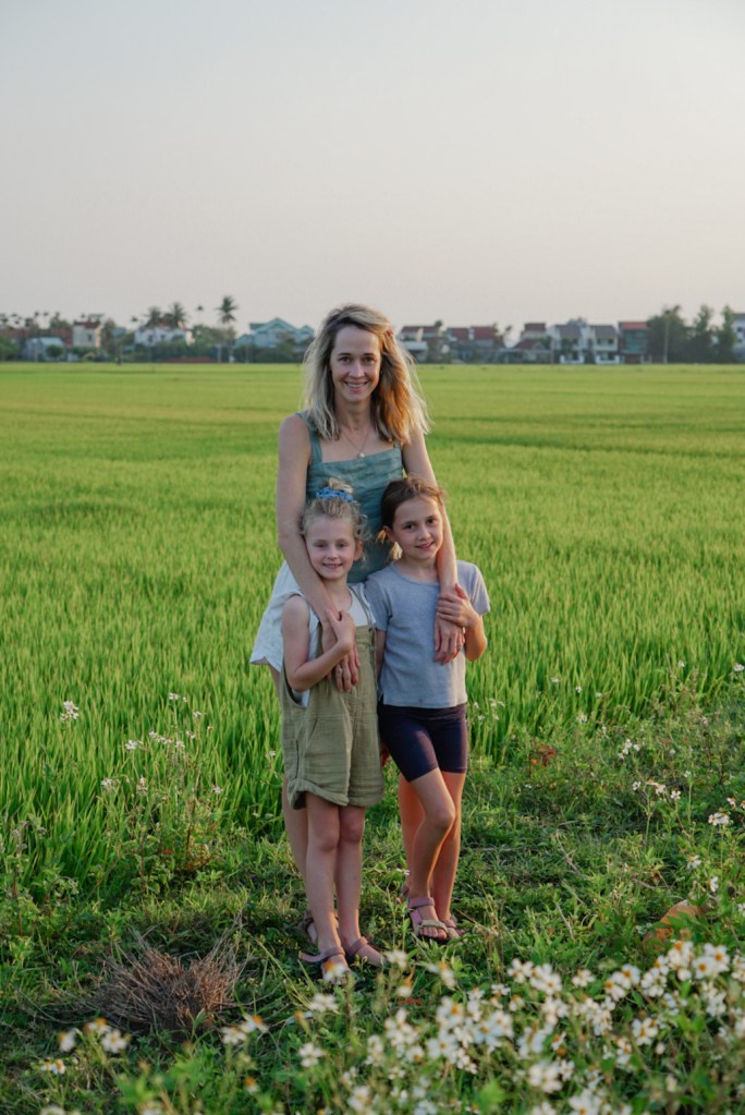 After grabbing our luggage (which we found shoved in a corner?!?) we raced to catch our connecting flight. Thankfully it was delayed…by like 5 hours! Lots of time to go over the events of the day as we sat waiting. Finally by 1am, we made it to Hoi An where we were dropped off by a taxi in a dark alleyway. We spent the next 30 minutes stumbling around in the rain with all our suitcases looking for our airbnb. Eventually our kind host found us, put the girls on the back of her scooter, while Tom and I ran after her, and took us to our home for the next week.